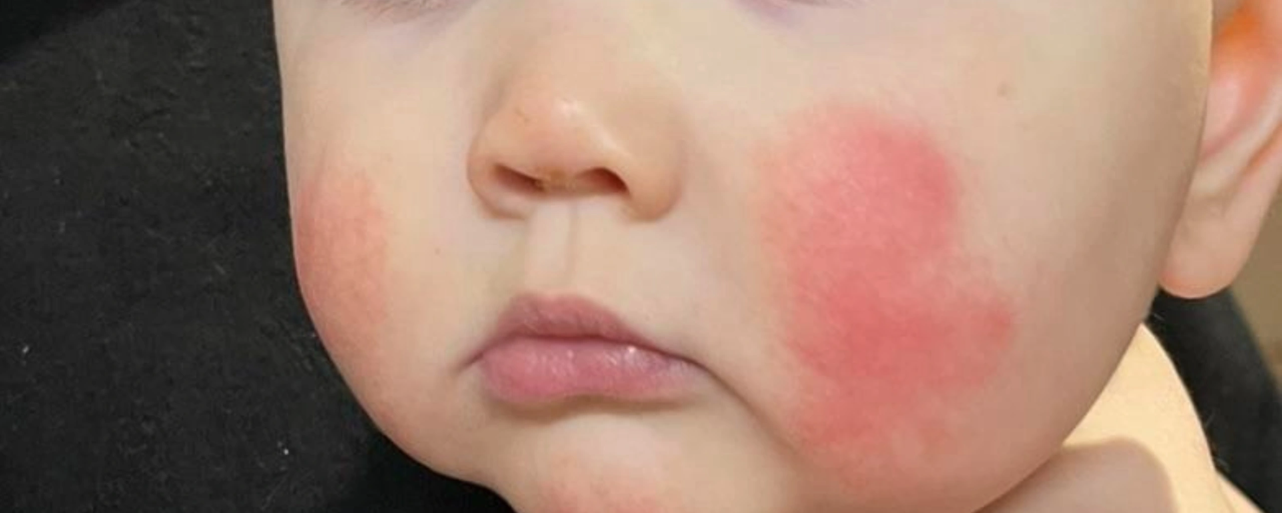 Babies skin is thinner and more sensitive than an adult’s skin. They often react to the slightest change in their diet or environment and their cheeks respond by becoming bright red. Sometimes, red cheeks are a completely normal symptom of healthy skin, however, they can also be a symptom of other conditions. Teething, eczema and viral infections can cause the cheeks to appear red and inflammed. Generally, if a child is sick, they have other symptoms as well as red cheeks. An elevated temperature is a common symptom when a child is sick.